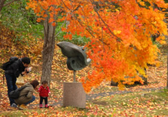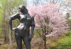 Our summer hours start with the coming of spring. Cherry blossoms and magnolias bloom in spring, vibrant green comes in summer, and the changing colors of leaves can be seen in fall. In our large area, you can enjoy observing the sculptures in a different light each season, and you can also touch the bronze pieces. We recommend going on a nature walk or spreading out a mat for a picnic.