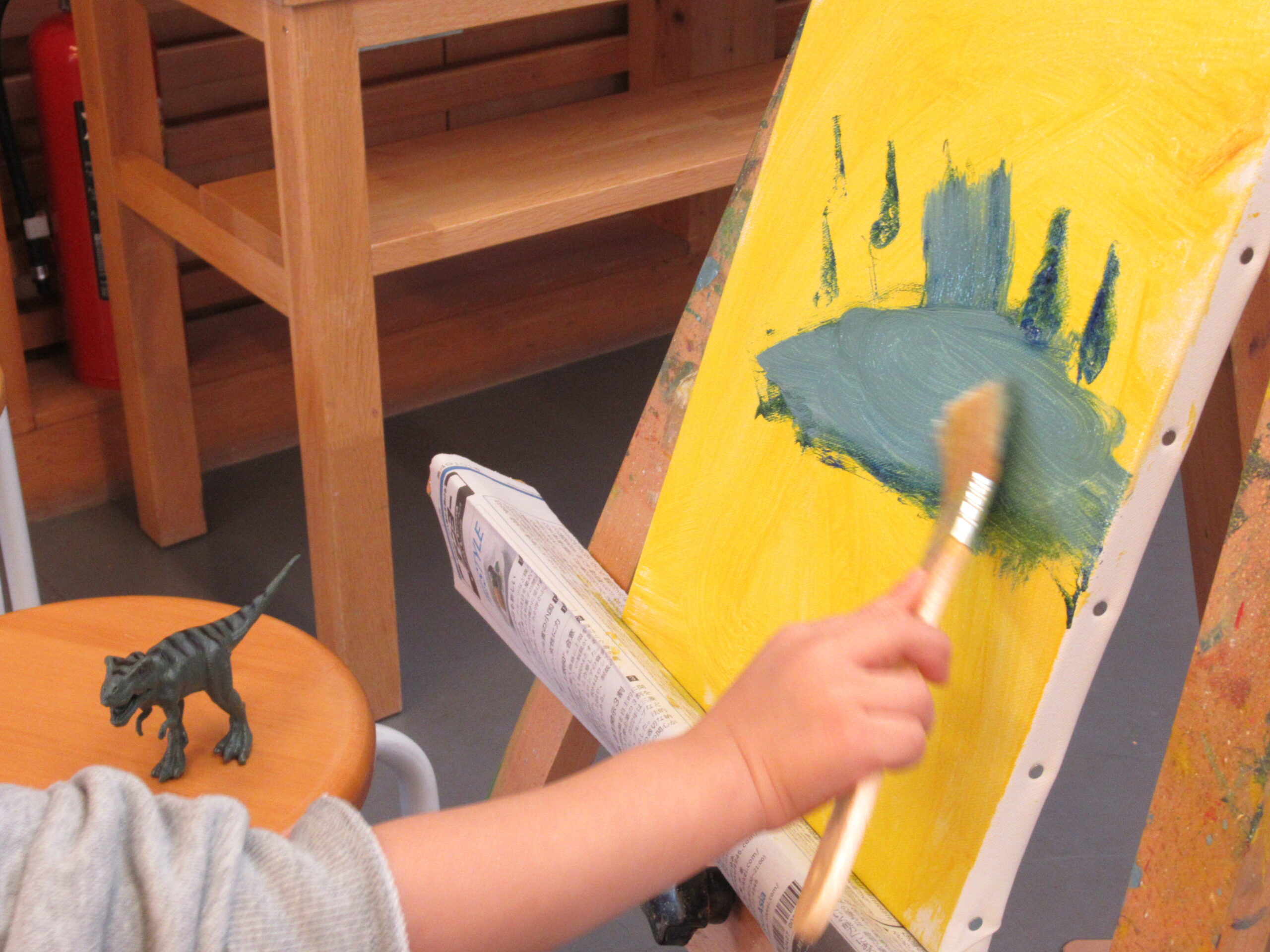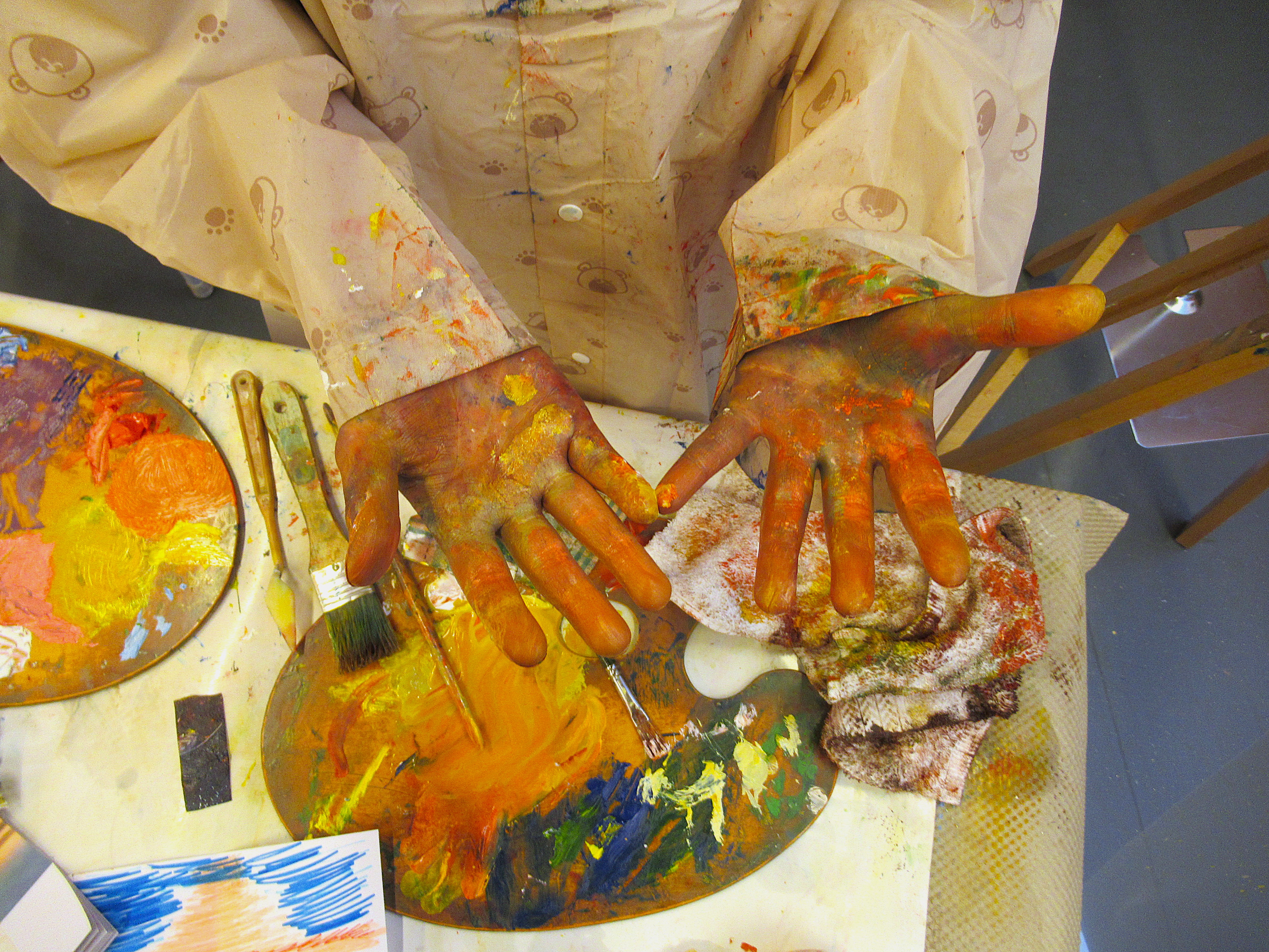 ・油絵の具を使います。付き添いの方を含め汚れてもよい服装をおすすめします。