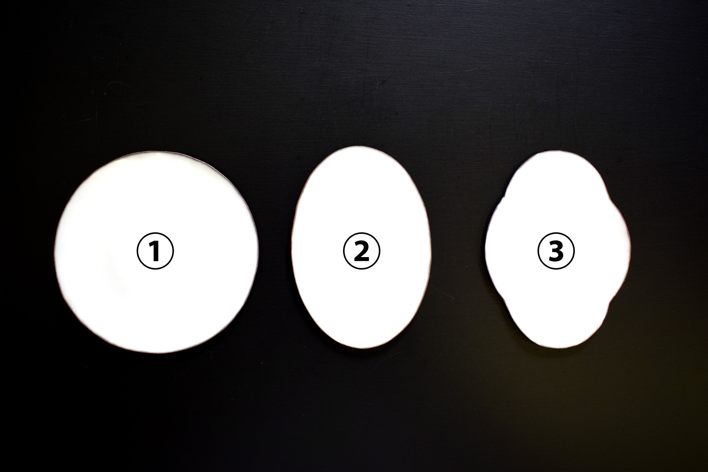 【サイズ】①丸型:約Φ10cm、②だ円型:約7×10cm、③くも型:約7×9cm