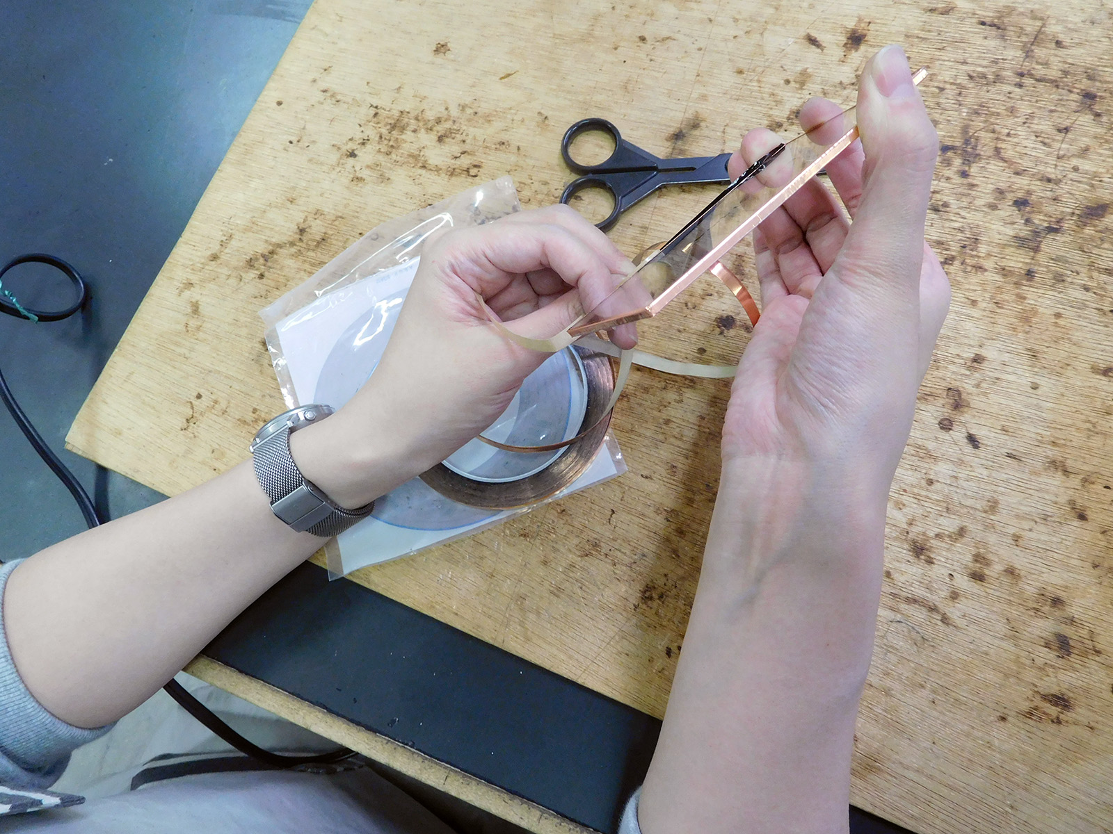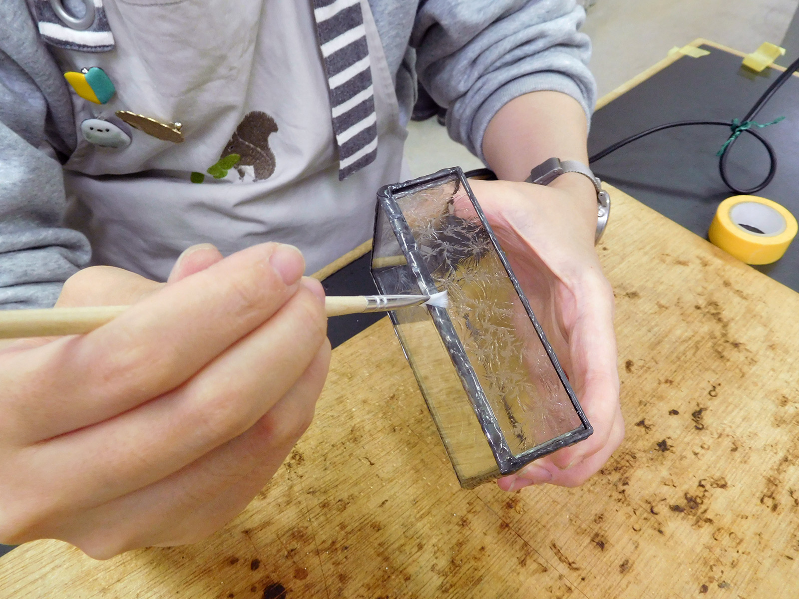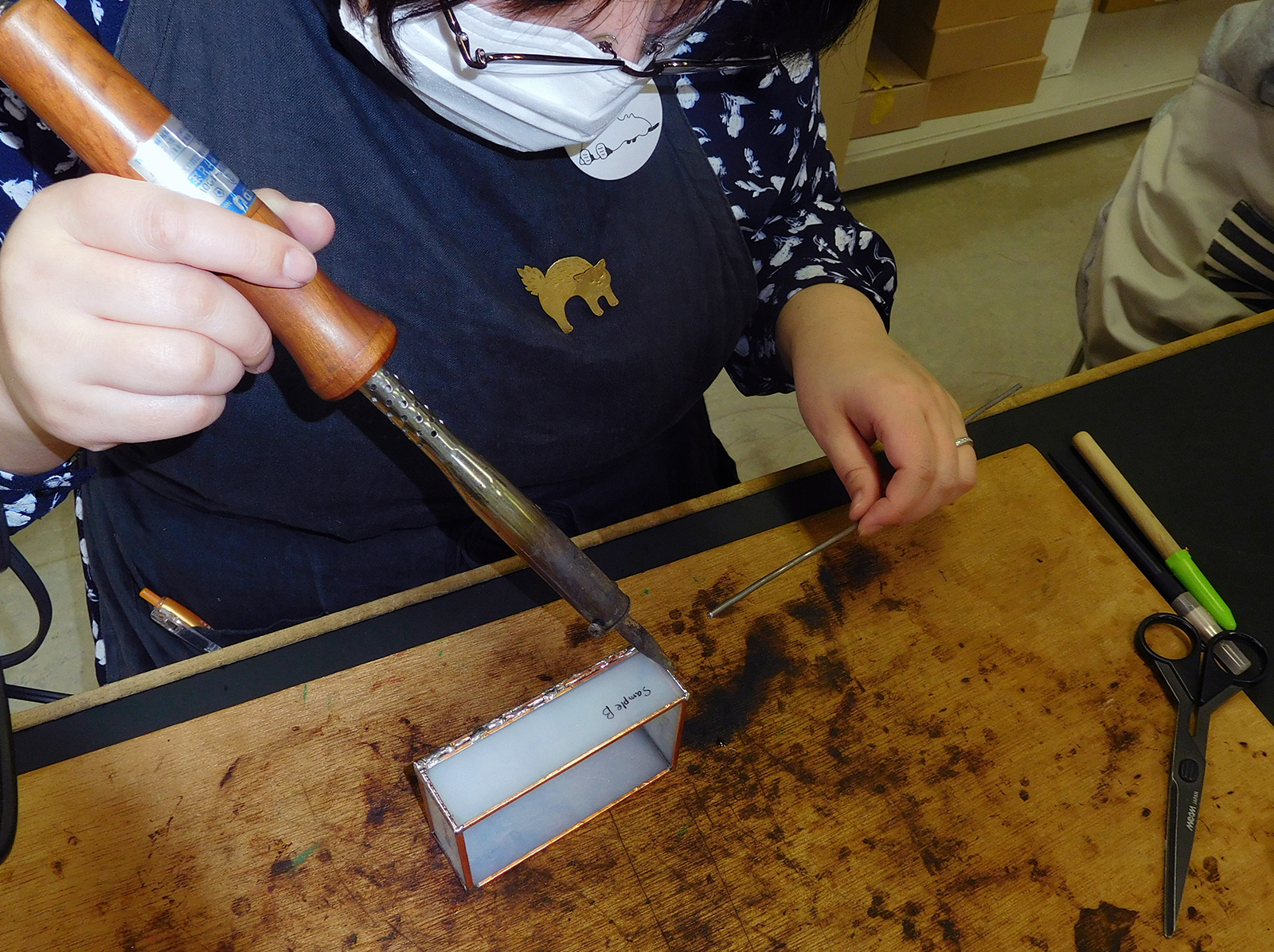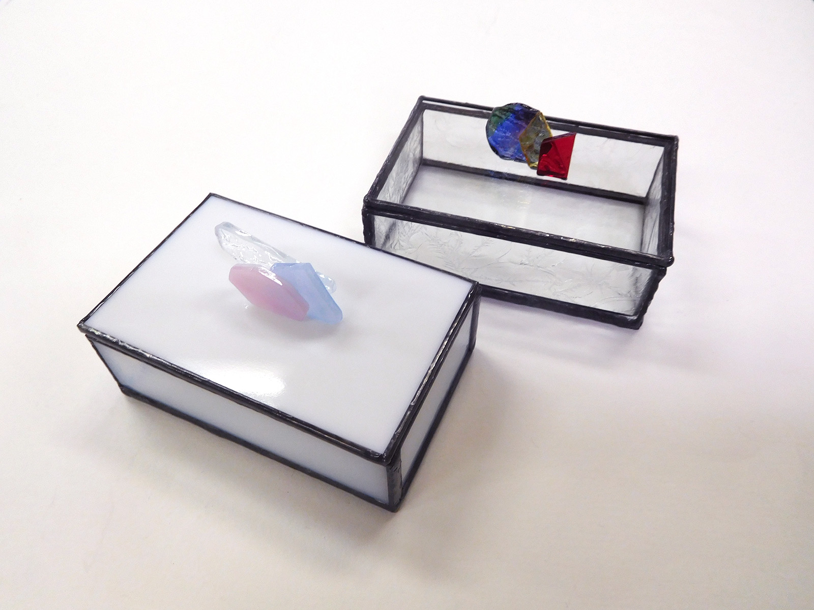 ステンドグラス技法を使ってあらかじめカットされたガラスパーツを組み立て、レトロなガラスの小箱をつくります。