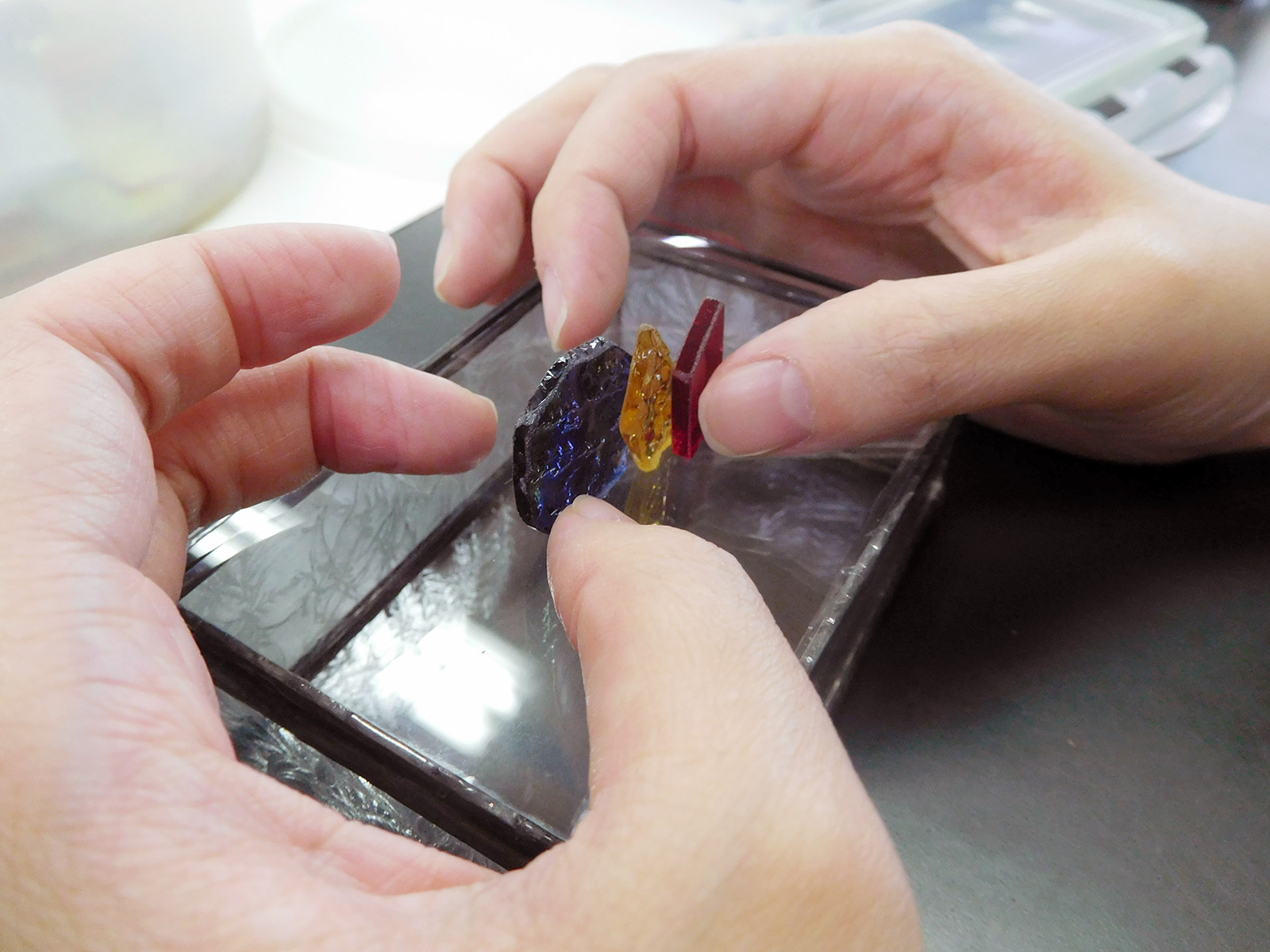 蓋には色ガラスピースを選んで自分だけのオリジナルの取っ手をつけられます。